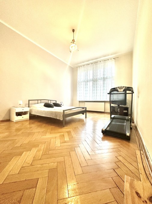 Przedmiotowa nieruchomość to przestrzeń o powierzchni 162,48 m2 położona na II piętrze odnowionej kamienicy przy Alei Jana Pawła II. Wysokie pomieszczenia (3,20 m) nadają przestrzeni niepowtarzalnego charakteru, a możliwość postawienia antresoli to doskonała opcja dla osób poszukujących indywidualnych rozwiązań architektonicznych. Mieszkanie w dobrym standardzie, z ogromnym potencjałem i możliwością aranżacji według potrzeb i uznania nowego Nabywcy. Od frontu mamy przestronne 3 pokoje, każdy po ok 30m2. Do pierwszego pokoju (obecnie sypialni) wejście z salonu. W salonie uwagę przyciąga klimatyczny wykusz - idealne miejsce do stworzenia kącika relaksacyjnego z książką i filiżanką kawy. Na podłogach wycyklinowany parkiet, który dodaje wnętrzu klasy. Kolejny niezależny pokój z wyjściem na spory balkon - ciepłą porą po całym dniu pracy możemy usiąść z kieliszkiem wina i cieszyć się urokami tętniącego życia miasta. Czwarty pokój usytuowany jest od strony podwórka - przestronny salon o wielkości standardowego mieszkania 2 pokojowego- prawie 50 m2 przestrzeni do relaksu i odpoczynku. Obecnie wydzielona ścianką regipsowo - kartonową część sypialniana i część dzienna. Na podłodze wycyklinowane poniemieckie deski, które dodają wnętrzu urokliwego klimatu. Dla Osób zakochanych w poniemieckich klimatach kolejna wisienka na torcie - a dokładniej na suficie - dobrze zachowana sztukateria. Przy pokoju znajduje się osobne wc. Nowoczesna, ustawna kuchnia, w zabudowie wraz ze sprzętem AGD (płyta indukcyjna, piekarnik, mikrofalówka, zmywarka), z wydzieloną przestrzenią jadalnianą i miejscem na stół. Na szczególną uwagę zasługuje stylowa spiżarka, od podłogi aż do sufitu, która pomieści wszystkie te mniej i bardziej niezbędne rzeczy. Łazienka z oknem z wraz z wc. Korytarz z którego jest wejście niemal do wszystkich pomieszczeń (oprócz pierwszego pokoju) z pojemną 3 drzwiową zabudowaną szafą typu Komandor. Czynsz do Zarządcy wynosi ok 1630 złotych (zawiera m.in zaliczkę na ogrzewanie, zaliczkę na zimną wodę, wywóz nieczystości fundusz remontowy). Ogrzewanie z sieci miejskiej. Ciepła woda podgrzewana za pomocą elektrycznego bojlera przepływowego. Okna częściowo drewniane starego typu, częściowo wymienione na PCV. Do mieszkania przynależy piwnica.