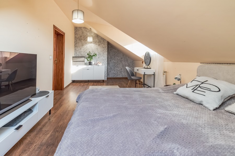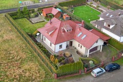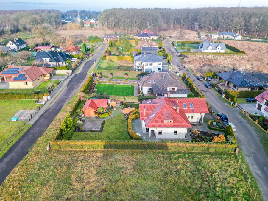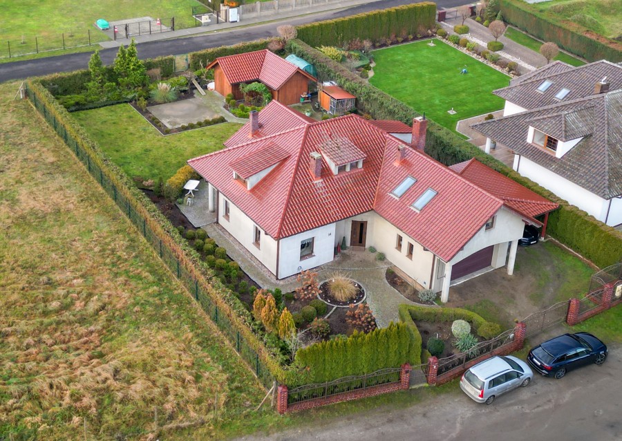 Przedmiotem sprzedaży jest dom wolnostojący, piętrowy z garażem dwustanowiskowym, wiatą na kolejne dwa samochody, oraz sporym drewnianym budynkiem gospodarczym - miejscem idealnym i zdecydowanie wystarczającym na wszelkie narzędzie czy sprzęty ogrodowe. Nieruchomość posadowiona na pięknie zagospodarowanej działce, z licznymi nasadzeniami o powierzchni 1112m2. Dom wybudowany w 2008 roku, według projektu BILBO 2 (lustrzane odbicie) w technologii tradycyjnej - murowany z bloczków betonowych na zaprawie cementowej. Budynek piętrowy, w którym parter stanowi salon, kuchnia, hall, łazienka, pokój oraz garaż i pomieszczenie gospodarcze. Otwierając drzwi wejściowe wchodzimy do przedpokoju z pojemną szafą w zabudowie wraz z miejscem na wierzchnią odzież. Dalej wita Nas przestrzeń - sam pokój dzienny to pomieszczenie o powierzchni 33,1m2 - gdy dodamy kuchnię z jadalnią tworzy się strefa dzienna o łącznej powierzchni 58m2 - w odczuciu nawet więcej, a to wszystko dzięki częściowo otwartej antresoli i wysokości do wierzchołka dachu. Niewątpliwego uroku i klimatu całości dodaje niezabudowany kominek, który co prawda nie posiada rozprowadzenia do pozostałych pomieszczeń, ale dzięki wspomnianej otwartej przestrzeni ciepło i zapach świeżego drewna czuć w całym domu. Widna i dobrze doświetlona kuchnia w zabudowie, z szafkami na wymiar z litego drewna, wraz ze sprzętem AGD. Jeśli Nowemu Nabywcy zamarzy się nowoczesna wyspa - nic nie stoi na przeszkodzie, można ją zamontować w miejscu obecnego barku (drewniany blat). A może Ktoś marzy o urządzaniu wykwintnych przyjęć bądź spędzaniu czasu z Najbliższymi przy rodzinnym stole - jadalnia zaprasza swoją gościnnością. Na tym poziomie pokój o powierzchni 14,3m2, który może pełnić funkcję gabinetu, sypialni bądź pokoju dla Gości. Dostępna jest również łazienka (z prysznicem, umywalką, wc, bidetem). Na I poziom prowadzą murowane schody (obecnie pokryte wykładziną). Piętro to hall z antresolą, trzy niezależne sypialnie i łazienka z wanną - bez wątpienia, jeśli wystąpi taka potrzeba, możemy ten poziom uznać za strefę dostępną wyłącznie do użytku mieszkańców. Mnie osobiście urzekła obszerna antresola, miejsce gdzie można odpocząć i zatrzymać się przy ciekawej lekturze z filiżanką ulubionej kawy. Wnętrze nieruchomości zadbane, w dobrym standardzie - jednak z uwagi na mijający czas, wymagające odświeżenia, modernizacji bądź aranżacji według ulubionych trendów. Ogrzewanie własne, za pomocą 2 obiegowego pieca gazowego (plus kominek w salonie). Obecny Właściciel zadbał aby nieruchomość była jak najbardziej funkcjonalna. Pomieszczenie gospodarcze i garaż dwustanowiskowy to na pewno kolejne atuty. Dodatkowo wiata i domek narzędziowy. W tym miejscu chciałabym zwrócić Państwa uwagę, że wszystkie dachy wymienionych parceli położone są ceramiczną dachówką renomowanej firmy RuppCeramika Rubin. Budynek ocieplony, do dokończenia zostało zrobienie elewacji (puc + kolor). Działka w pełni zagospodarowana, z miejscem na wolnostostojący basen (wyłożona kostką brukową). Oferta godna polecenia również ze względu na otoczenie spokojna, kameralna okolica z łatwym dostępem do terenów zielonych i przestrzeni rekreacyjnych, idealna dla Rodzin, Osób ceniących ciszę oraz prywatność. Wille i nowoczesne domy jednorodzinne, a także infrastruktura lokalna ulic sąsiadujących (np. Wojska Polskiego, Cicha), tworzą przyjazną i bezpieczną okolicę do zamieszkania. W odległości kilku minut od nieruchomości znajduje się m.in. Jezioro Nowogardzkie - duży akwen z plażą, ścieżkami spacerowymi i terenami rekreacyjnymi, idealny na spacery, rower czy relaks nad wodą.
