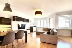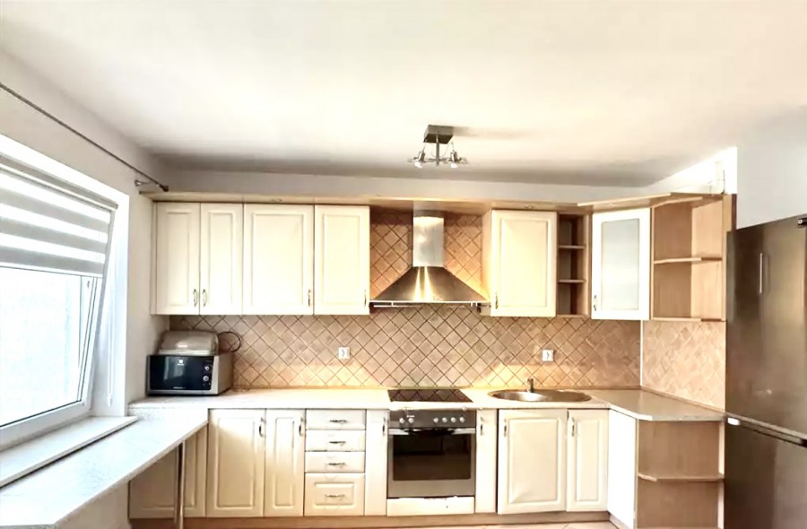 Kuchnia jest widna i połączona z salonem, wyposażona w meble na wymiar, wykonane pod indywidualne zamówienie. Ekspozycja na stronę zachodnią zapewnia doskonałe doświetlenie przez cały dzień. Mieszkanie jest częściowo umeblowane, co pozwala na wprowadzenie się bez konieczności większych nakładów.