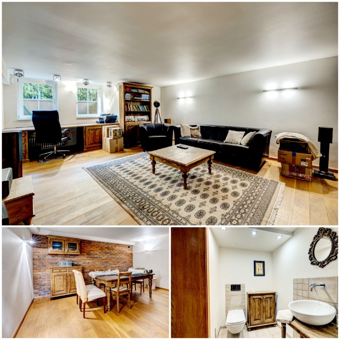 Kończąc oglądanie domu wewnątrz zapraszam do obejrzenia poziomu -1 o powierzchni 109,70m2, który znacząco różni się od tych z lat 30-tych poprzedniego wieku. Piwnice zostały pogłębione o 20 cm, wysokie na 2,20m i zaadoptowane na potrzeby dnia codziennego. Znajdziemy tutaj pomieszczenia, które obecnym Właścicielom służą jako pokój telewizyjny, pokój do ćwiczeń, spiżarnia z oddzielnym utrzymaniem niskiej temperatury, wc oraz pomieszczenie gospodarcze wraz z pralnią. W tym ostatnim umiejscowiony jest nowy dwuobiegowy kocioł gazowy z zasobnikiem ciepłej wody firmy Brotje (w pełni automatyczny), a także mechaniczny filtr wody z odwapniaczem. Ogrzewanie własne, gazowe, ogrzewanie podłogowe dostępne jest w piwnicy, w kuchni, w łazience, w wc i na przedpokoju.